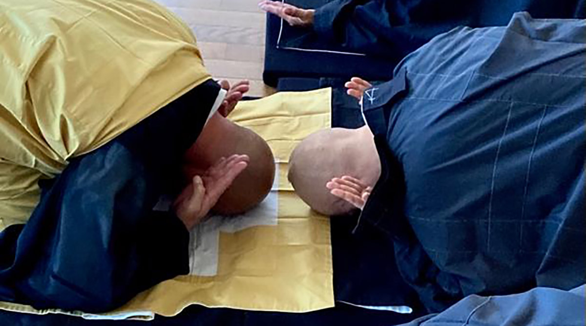 After practicing zazen, disciples and teacher bow together. They enter into harmony and merge into one spirit. Sanpai transcends the individualistic nature of the human being and opens the way to a higher dimension.